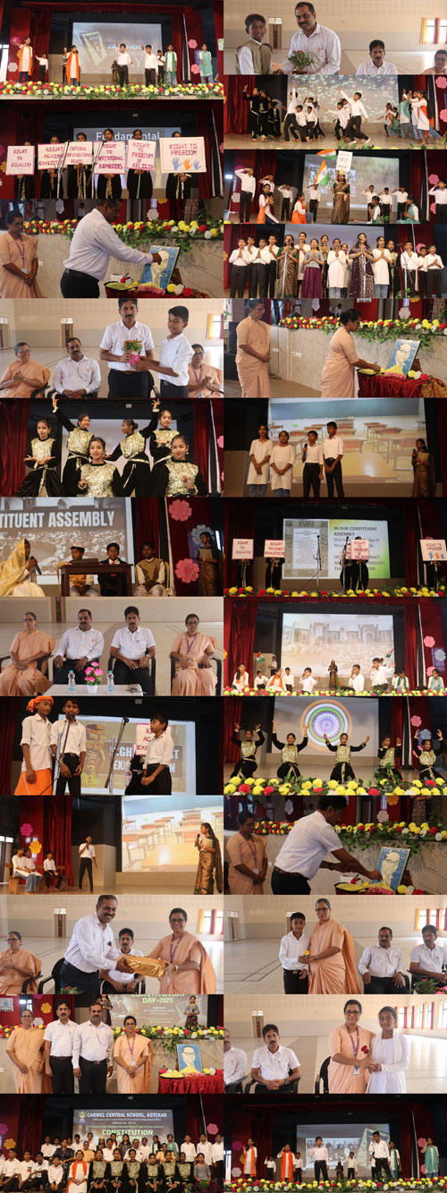 Mangaluru, Nov 27: Carmel School, Kotekar, in collaboration with the Dakshina Kannada District Legal Services Authority, observed Constitution Day on November 26. The programme was graced by the presence of the chief guest, Sukesh Kumar Shetty, advocate, Mangaluru, accompanied by Prem Kumar, advocate.