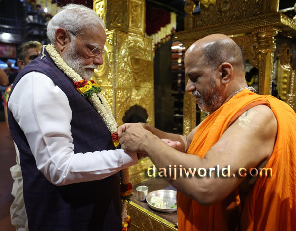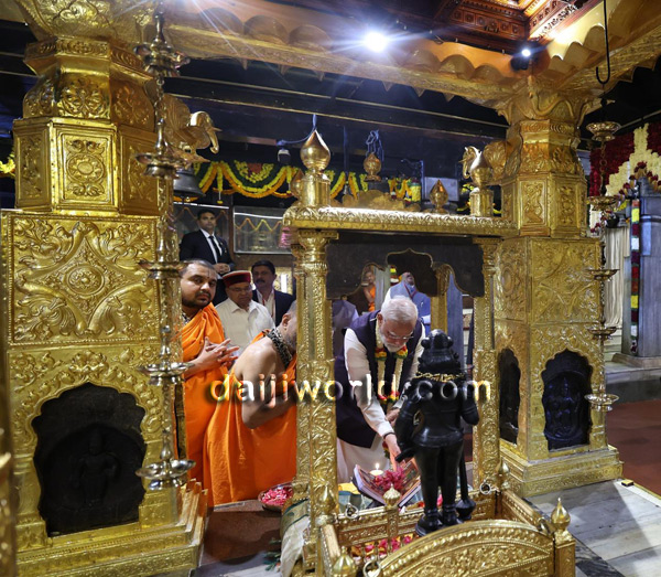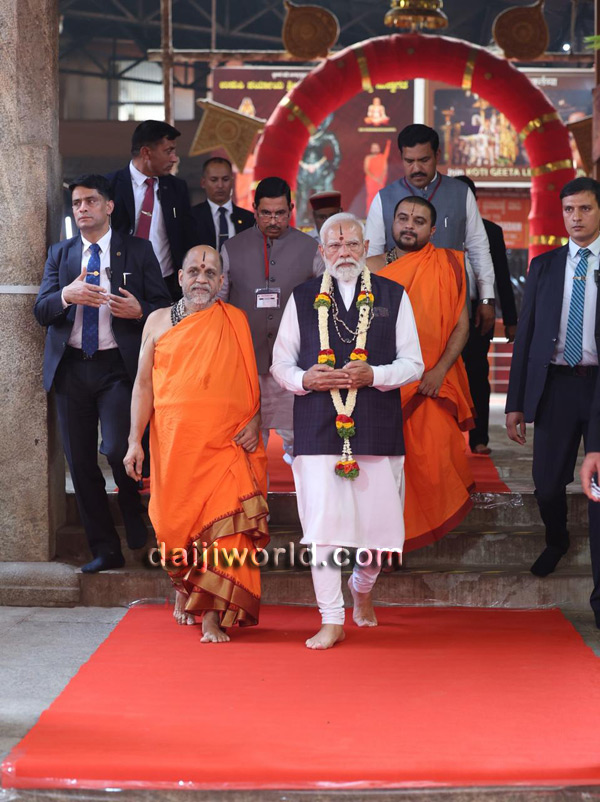 Following this, Modi proceeded to the sacred Madhwa Sarovara, performed Teertha Prokshane, and then entered the inner premises of the Math to continue his visit and participate in the scheduled rituals.