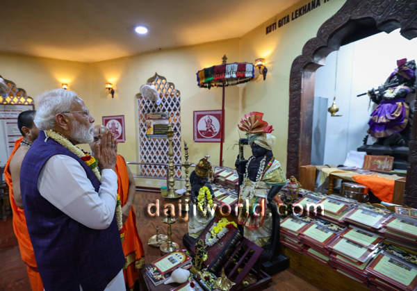 At the main entrance of Sri Krishna Math, the Prime Minister was accorded a traditional Poornakumbha welcome. Seers of the Math and various elected representatives extended their greetings to him.