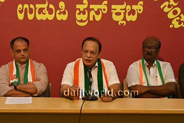 The press meet was attended by Udupi district Congress campaign president Harish Kini, chief convener KPCC campaign committee Dinesh Putran, Udupi Block campaign committee president Prashanth Poojary, Brahmavara block Rajesh Shetty kumrugodu, vice president campaign committee Dinakar Shetty Nitte and others.
