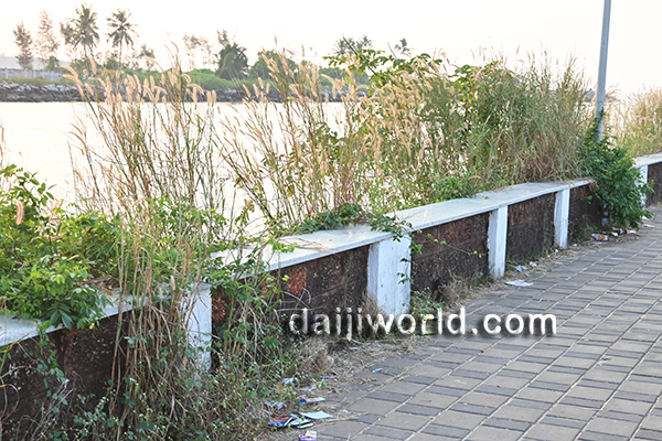 Vegetation that sprouted during the monsoon has now grown into tall, dense thickets along the entire stretch. These plants have overtaken seating areas, preventing visitors from resting or enjoying the sea view. Meanwhile, garbage continues to accumulate, worsening the state of the promenade.