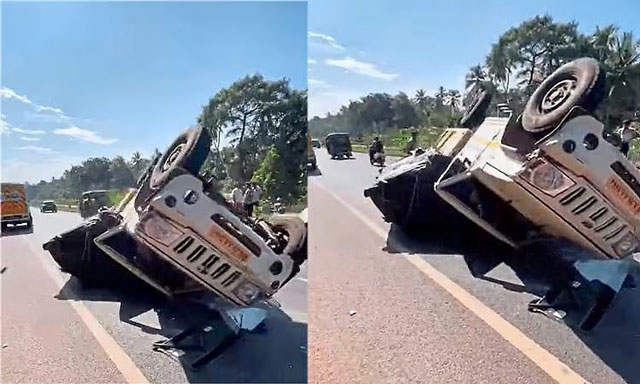 Kaup, Dec 4: A tempo overturned on Thursday, December 4, near Ermal Tenka after a tyre burst, causing the driver to lose control and the vehicle to topple onto the road.