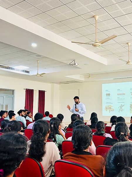 Following this, resource person Johnson began his talk, sharing his life journey and how he kept hope and determination alive despite challenges. He highlighted his first invention a plane which became a milestone that shaped his entrepreneurial mindset.