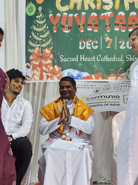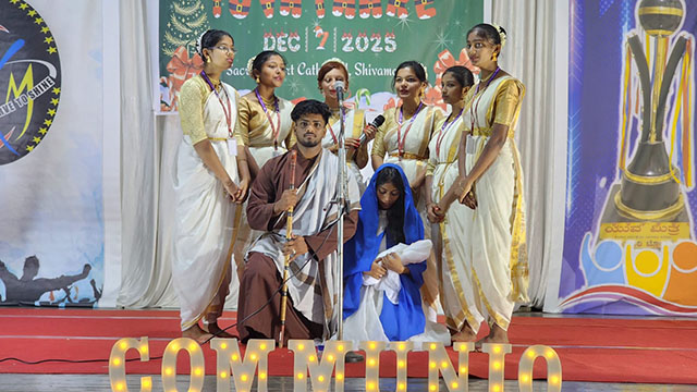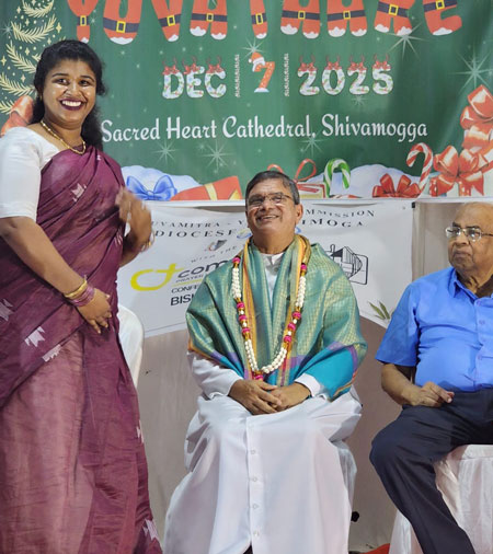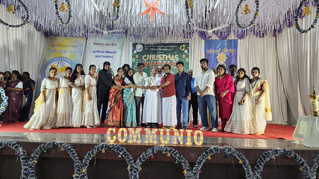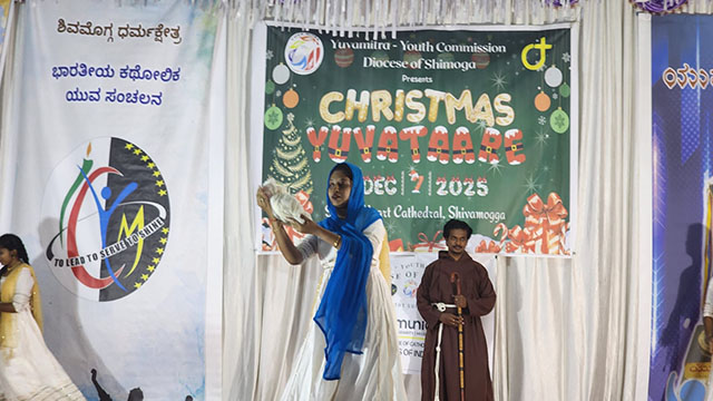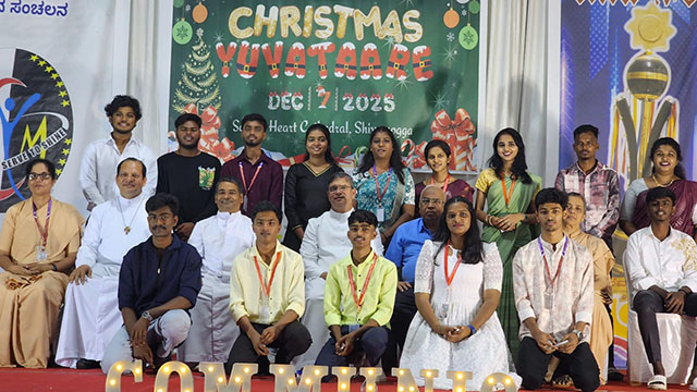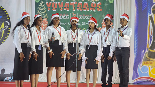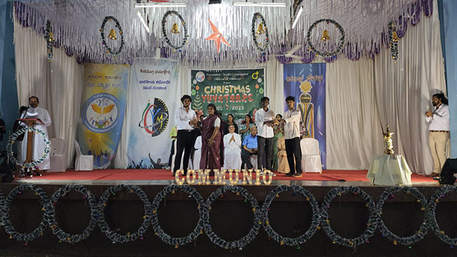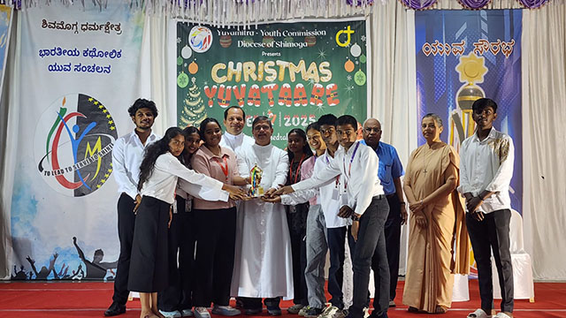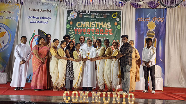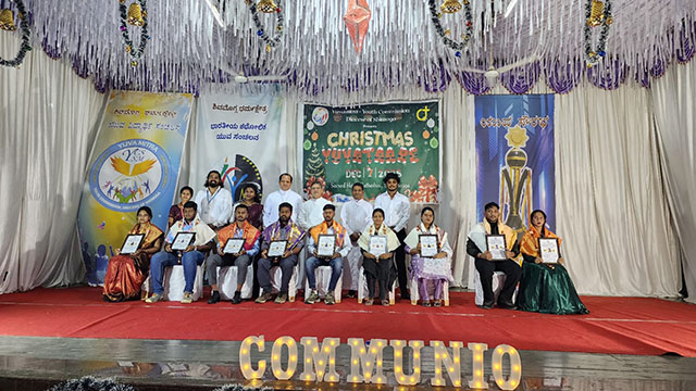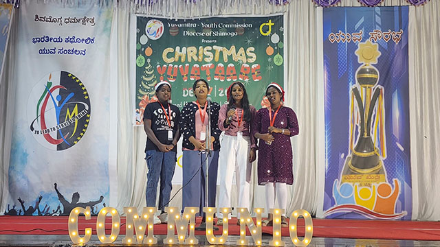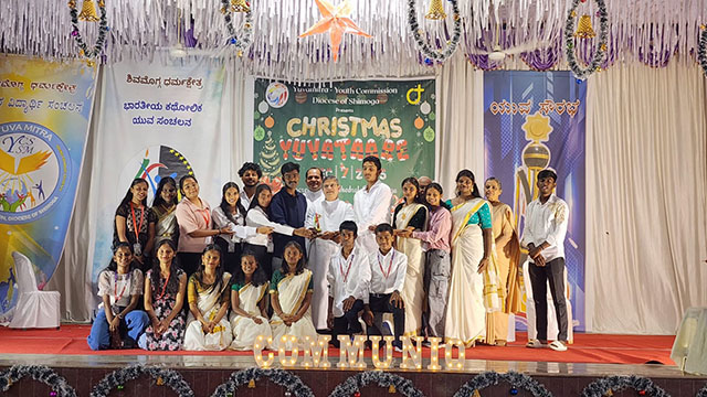 Shivamogga, Dec 8: The Youth Commission of the diocese of Shimoga, ‘Yuvamitra',’ hosted Youth Christmas and the Yuvakeerthi Awards for the diocese's youth at the Sacred Heart Cathedral Hall on December 7. The programme commenced with an icebreaker session facilitated by Sannidhi, ICYM president of Sacred Heart Cathedral, Shivamogga, and their team.
