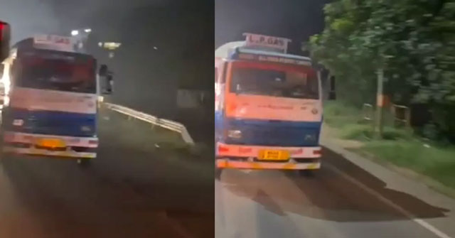 Udupi, Dec 8: A potentially catastrophic incident was narrowly avoided on the national highway near Udupi after a gas bullet tanker driver, allegedly in a drunken state, hurtled down the road without switching on the headlights, endangering numerous motorists.