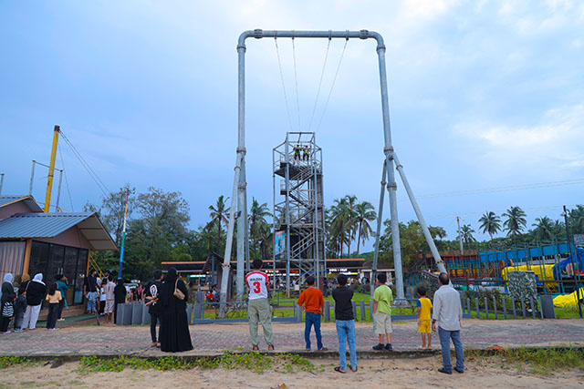 Adventurers can take on the Free Fall Platform, soar down the Zip Line, scale the Wall Climbing tower, swing through the air on the Giant Swing, or enjoy the unique Sky Cycling experience with panoramic ocean views.