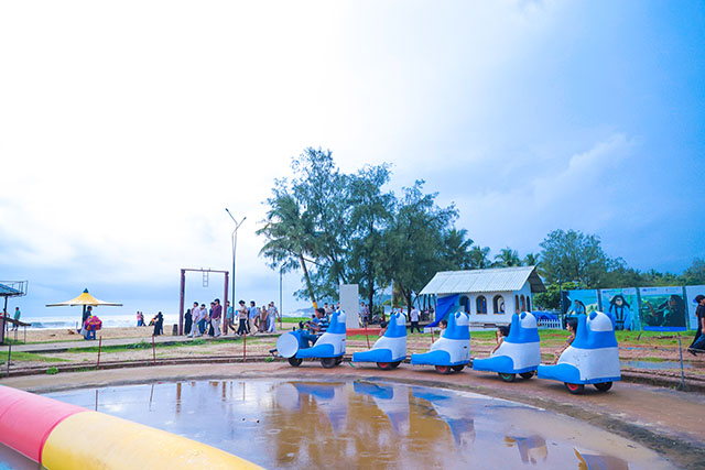 Adding to the excitement is Sky Dining, a one-of-a-kind attraction where guests can enjoy a gourmet meal while being gently lifted above the park — surrounded by stunning views of the coastline and Bekal Fort. It is an experience that beautifully blends thrill, taste, and breathtaking scenery, making it a must-try for couples and families.