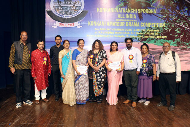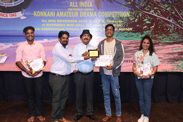 Mumbai, Dec 10: Konkani Bhasha Mandal Maharashtra, one of Mumbai’s oldest and most reputed Konkani organizations, successfully organized the GMB Rodrigues Memorial All India Amateur Konkani Drama Competition on November 30 at Ravindra Natya Mandir Mini Hall, Behind Siddhivinayak Temple, Prabhadevi, Mumbai.