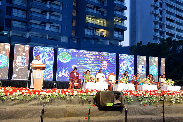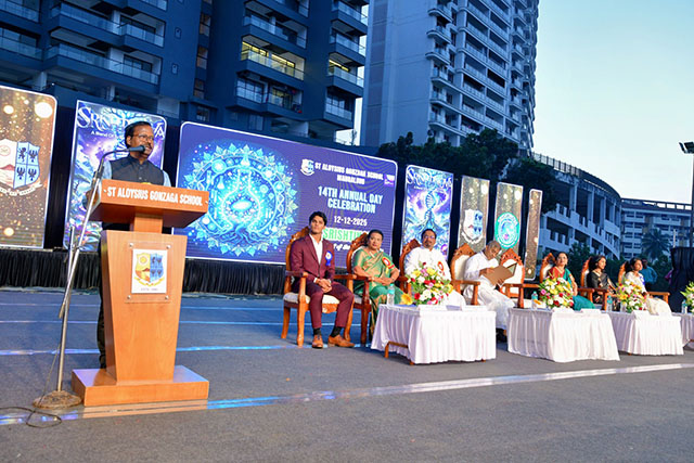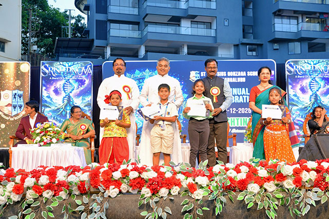 Mangaluru, Dec 13: St Aloysius Gonzaga School celebrated its 14th Annual Day on December 12 in the school grounds with the theme “Srishtinova – A blend of science and nature.” The programme highlighted the harmonious integration of scientific progress, creativity, and respect for nature.