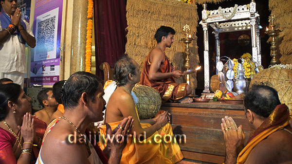 The tradition behind Dhanya Muhurata is the collection of grains to offer food to the devotees who come during the next two years of Shiroor Paryaya from January 17, 2026. The guests offered new grains to the plate with Navagraha thought and offered it to Lord Krishna.