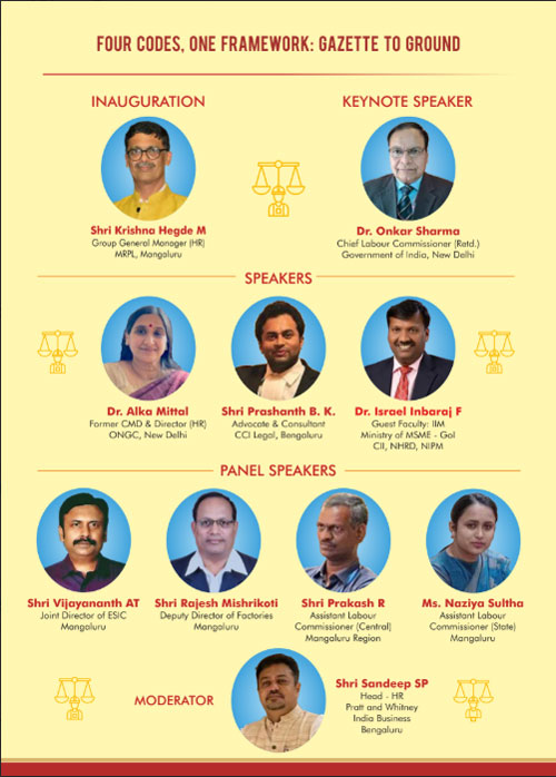 Krishna Hegde M, group general manager at MRPL, will inaugurate the workshop. Sub Lieutenant Abhay Udupa, will be the guest of honour during the inaugural programme and will be felicitated in recognition of his appointment as Sub Lieutenant at Indian Navy. The programme features an eminent panel of speakers including Dr Onkar Sharma, chief labour commissioner (Retd), Government of India, Dr Alka Mittal, former CMD and director (HR), ONGC, New Delhi, Dr Israel Inbaraj F, guest faculty, IIM, Prashanth B K, advocate and consultant, CCI Legal, Bengaluru, Rajesh Mishrikoti, deputy director of factories, Mangaluru, and other local statutory authorities. Industry perspectives will be shared by Sandeep S P, head – HR, Pratt & Whitney India Business, Bengaluru during the panel discussion.