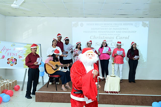 Mangaluru, Dec 20: The spirit of Christmas found its most moving expression at Father Muller Medical College Hospital as young cancer survivors and their families came together for a celebration filled with hope, courage, and heartfelt joy. The departments of Paediatrics and Paediatric Haemato-Oncology, along with the Medical, Surgical, and Radiotherapy Oncology departments, organised a special Christmas programme that transformed the hospital space into one of laughter, warmth, and renewed faith.