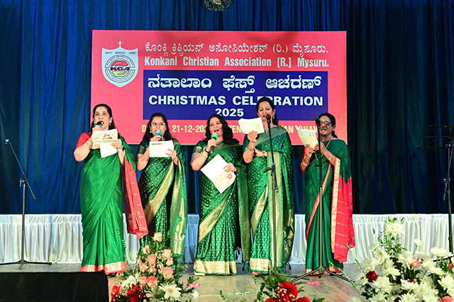 Fr Santhosh John, parish priest of Holy Family Church, Hinkal, gave the Christmas message, Joyce Sequeira, general secretary of KCA welcomed the gathering. Meena Dias, vice president, proposed the vote of thanks. Vincent D’Souza compered the programme. Stany Lobo vice president, treasurer Anil Saldanha, Sylvester D’mello and Pramila Monis joint secretaries participated in the festivities. Konkani residents of Mysuru and Chamarajanagar districts attended the party, which concluded with a festal dinner provided by the Association.