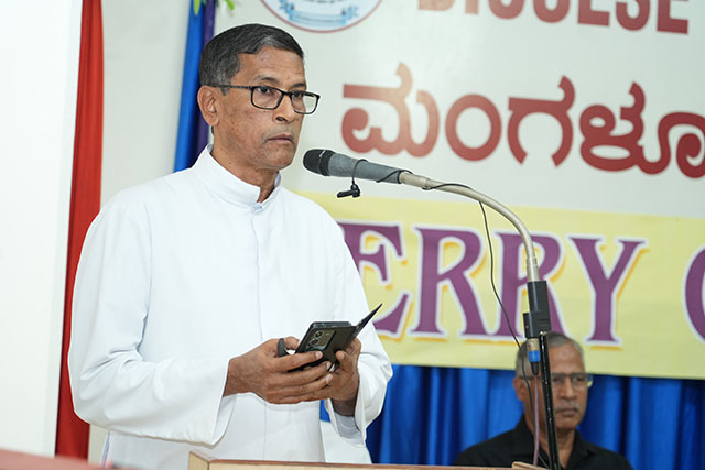 Msgr Fr Maxim Noronha, vicar general’ Fr J B Saldanha, PRO of Mangalore diocese; Roy Castelino, PRO of Mangalore diocese; Dr John D’Silva, secretary, Diocesan Pastoral Parishad; Elias Fernandes, media representative; Fr Anil Ivan Fernandes, director, Canara Communication Centre; Fr Rupesh Madtha, editor of Raknno Weekly; Fr Maxim Rosario, diocesan estate officer; Fr Ivan D’Souza, bishop's secretary; and Fr Jagadish Pinto, financial administrator, graced the event.