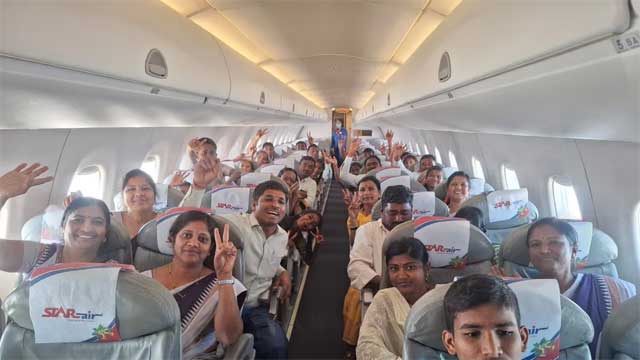 On December 26, a total of 40 people, including 24 students, the SDMC president and members, and school teachers, travelled to Bengaluru via the Jindal airport. The excitement among the students was clearly visible as many of them experienced air travel for the first time. The students boarded the flight from Jindal airport and flew to the state capital.