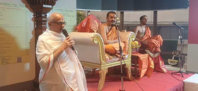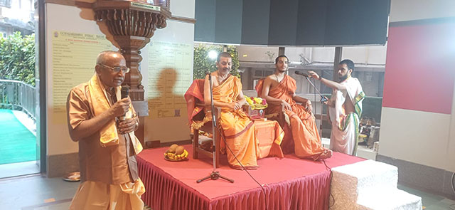 On the opening day, Sunday, December, 21, the Swamijis were welcomed with traditional honours by the executive board of the Gopalakrishna Public Trust and B S K B. Association officials escorted them to the temple. Devotees offered aarti to Lord Gopalakrishna, while president Dr Suresh Rao warmly welcomed the Swamijis, praying that the teachings of the Ramayana enrich the devotees’ hearts. Vidwan Mahuli Vidyasingh Acharya, head of Mulund Satyadhyana Peetha, delivered the inaugural address. Throughout the week, the Junior Swamiji narrated moral stories and mythological lessons, connecting them to everyday life for the devotees.