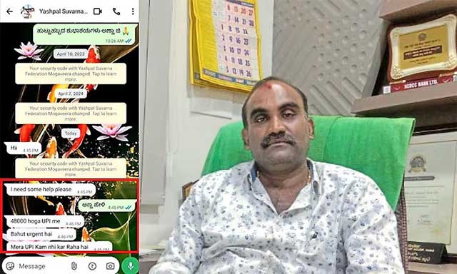 Udupi, Dec 31: The WhatsApp account of Udupi Assembly constituency MLA Yashpal Anand Suvarna has been hacked, following which cyber fraudsters have been sending messages to his contacts seeking money.