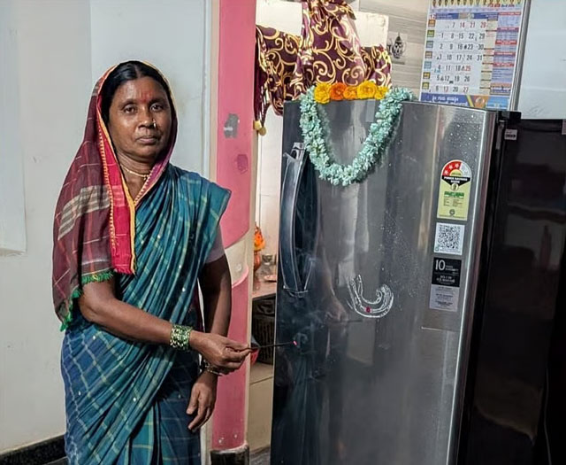 Hanumamma Nadulamani, a resident of Uppaladoddi village in Sindhanur taluk of Raichur district, set aside the Rs 2,000 credited every month under the Gruha Lakshmi scheme without spending it. After receiving assistance for a total of 23 instalments, she utilised the accumulated amount to buy a refrigerator.