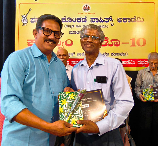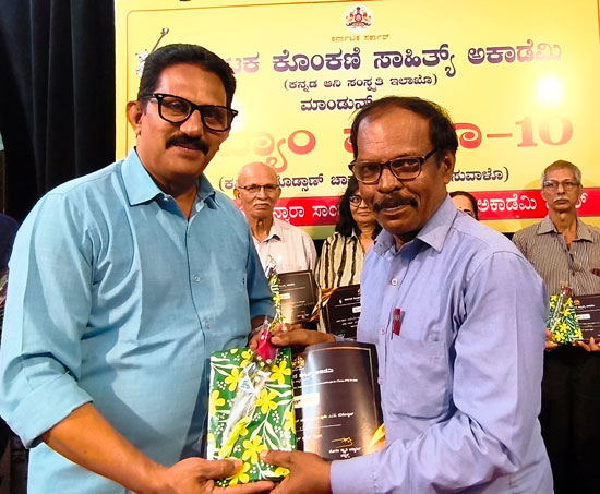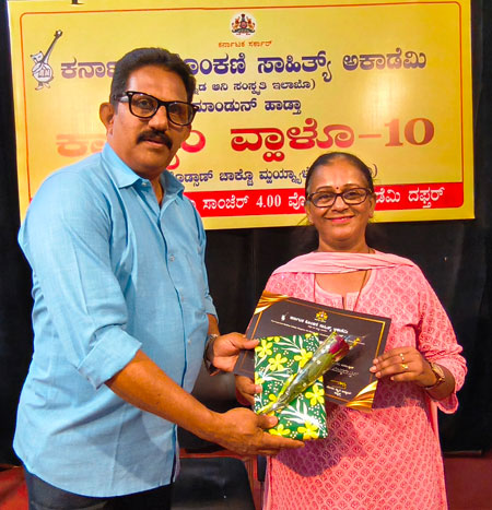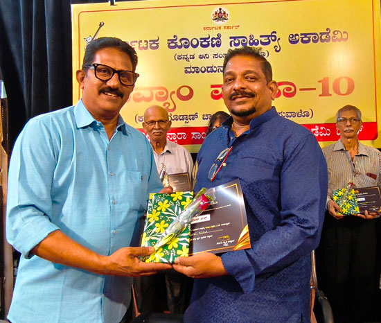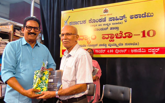 As part of the programme, Alwyn Sequeira, popularly known as ‘Melody Master’, who has been rendering literary service for the past 46 years by taking Konkani literary books and CDs to villages during festivals and selling them, was felicitated.