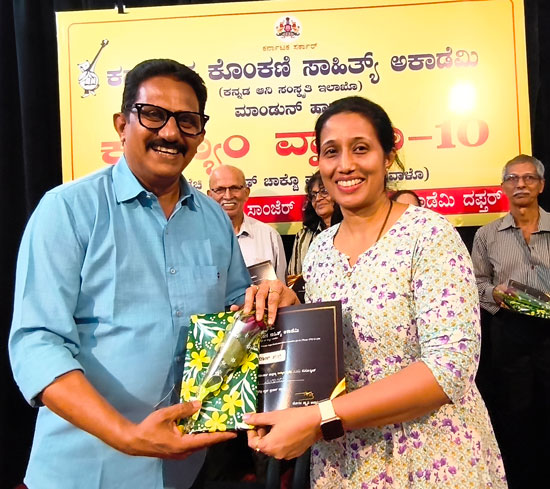 Chief guest Manjula Nayak, president of Samarasya Mangaluru, spoke about the struggles and efforts of elders for the survival of the Konkani language, which resulted in its inclusion in the Eighth Schedule of the Constitution of India. She said the Karnataka government had established the Konkani Academy, and it is now the responsibility of the Konkani community to preserve and nurture the language. She lauded the Karnataka Konkani Sahitya Academy for its continuous efforts in this direction.