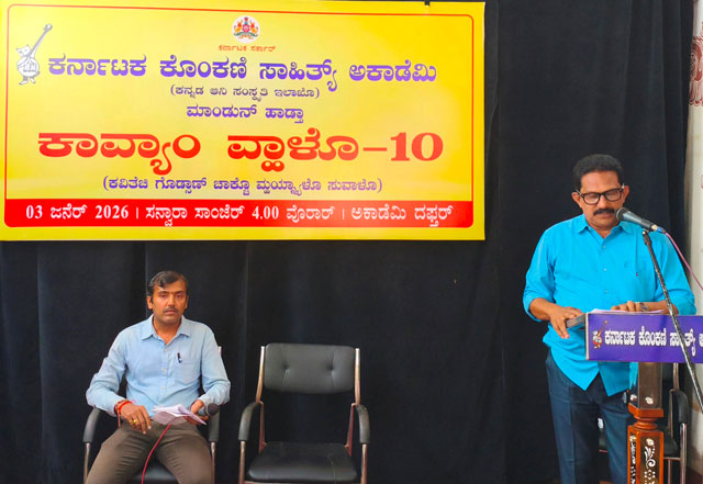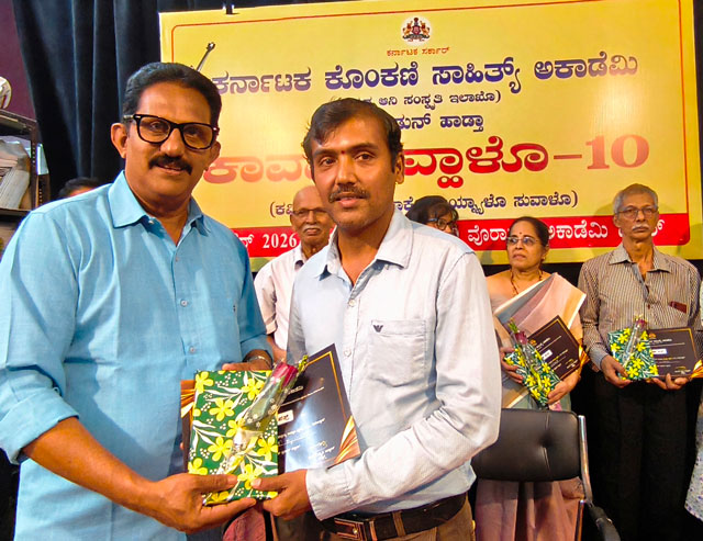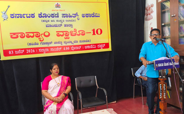 Mangaluru, Jan 3: The Karnataka Konkani Sahitya Academy organised a poets’ meet titled ‘Kavyaan Vhalo–10’ at the Academy auditorium on January 3, 2026. The programme was presided over by Academy president Joachim Stany Alvares.