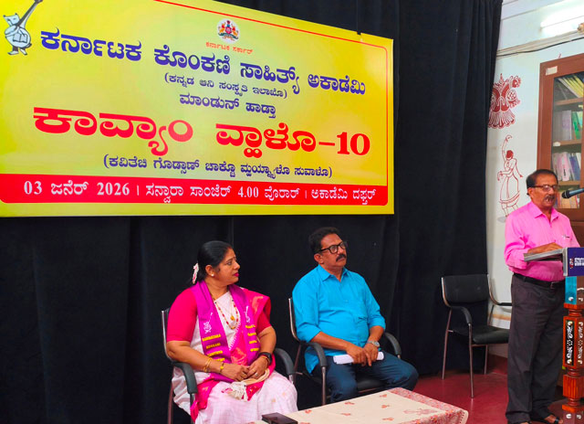 In his introductory address, Joachim Stany Alvares conveyed his wishes for a happy and prosperous year 2026. He recalled that the ‘Kavyaan Vhalo’ initiative was launched on March 8 last year on the occasion of International Women’s Day, exclusively for women, and expressed happiness that the programme has now reached its 10th edition. He noted that more than 75 poets participated in the event and encouraged more young poets to take inspiration from the enthusiasm shown and actively engage in poetry writing. He also extended a warm welcome to all participants.
