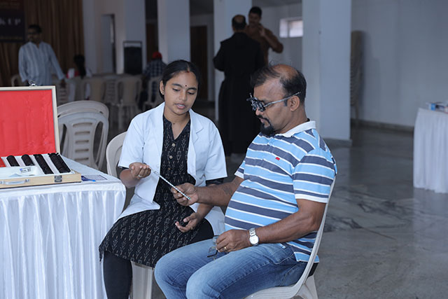 The camp was organised in association with the Carmel Jyothi Public Charitable Trust. A team of doctors from Dr Agarwal Eye Clinic, Mangaluru, including ophthalmologists Dr Krisma, Dr Vijitha, and Dr Mahesh, along with their supporting staff, conducted comprehensive eye screenings and advised suitable corrective measures to the beneficiaries. As part of the outreach, 150 pairs of spectacles were distributed free of cost to those diagnosed with vision problems, bringing visible relief and happiness to many.