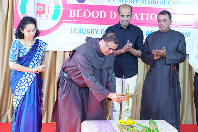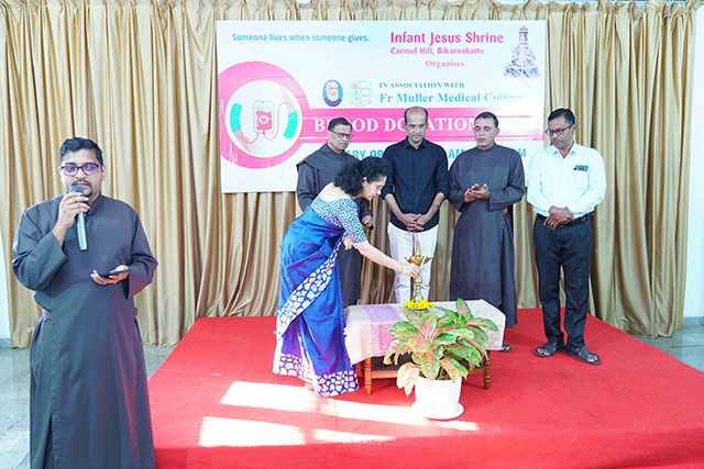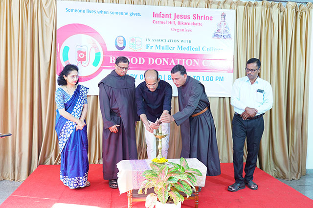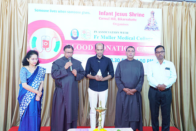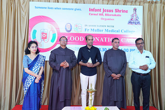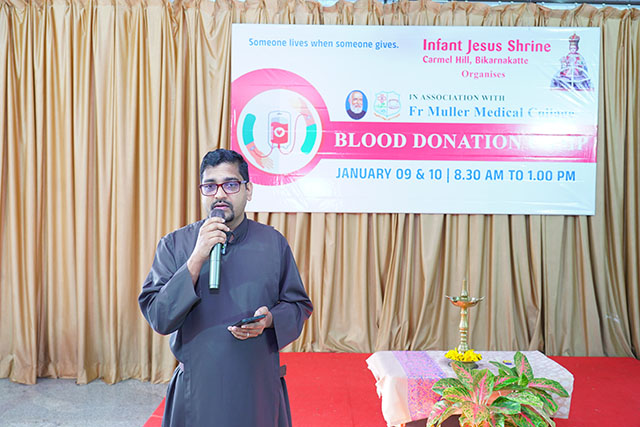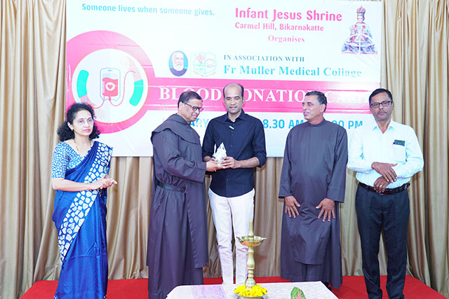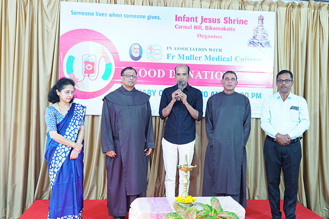 Mangaluru, Jan 10: As part of its ongoing commitment to social responsibility and humanitarian service, the Infant Jesus Shrine, Bikarnakatte, in collaboration with Father Muller Medical Institutions, organised a blood donation camp on Friday, January 9 to promote voluntary blood donation and encourage community participation in saving lives.