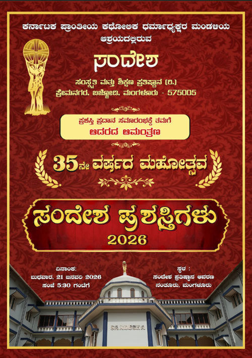Sandesha Foundation for Culture and Education, an institution acclaimed for its unwavering commitment to building a value-based society, proudly announces the Sandesha Awards 2026. Founded in 1989 and registered as a charitable trust in 1991, Sandesha has emerged as a trailblazer in promoting harmony, creativity, and excellence through sustained initiatives in art, culture, education, media, and folklore.
