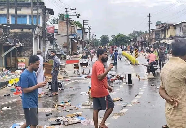 Authorities said the trouble began when a group of youths stopped a timber-laden vehicle in Saidarpar under Fatikroy police limits, demanding a contribution for the community fair. The dispute escalated after a minority family in Shimultala reportedly refused to pay, prompting a mob to gather, set fire to properties—including a timber shop—and vandalise a place of worship.