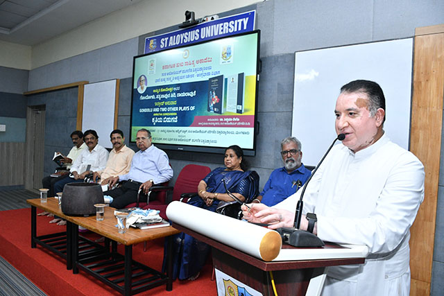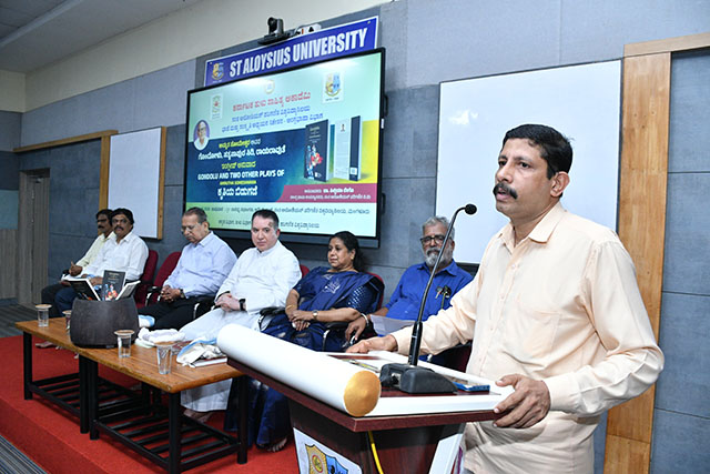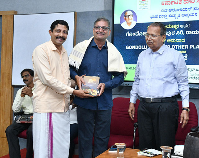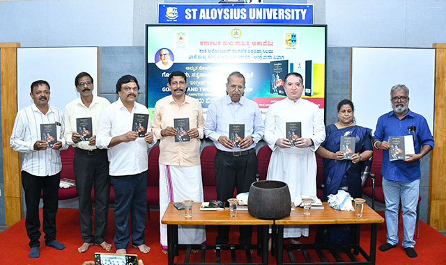 Mangaluru, Jan 16: The book release of 'Gondolu and Two Other Plays of Amrutha Someshwara', translated from Tulu to English by Dr Sylvia Rego, professor of English, St Aloysius (Deemed to be University), was organised by Karnataka Tulu Sahitya Academy in collaboration with school of languages and culture and the department of English, St Aloysius (Deemed to be University) on January 14, in Sanidhya Hall of the university.