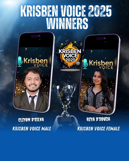 Recently, Krisben Music successfully conducted the Krisben Voice 2025 online singing contest. This global competition offered a mega cash prize of Rs 50,000 each for the male and female winners and received a very positive response from Konkani singers and audiences worldwide.