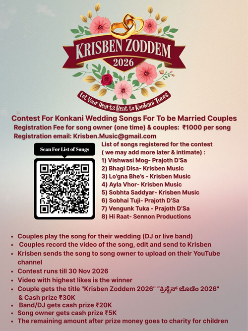 Krisben Music has announced a contest for the couples who are going to get married soon, ‘Krisben Zoddem 2026’, to promote Konkani songs during wedding celebrations of Konkani people.