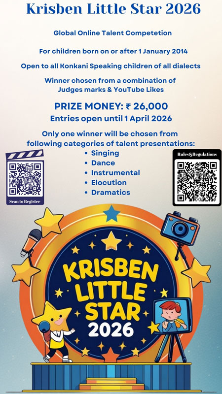 The contest seeks to nurture young voices, expressions, and performances, encouraging children to sing, speak, dance, play music and dramatize — growing into tomorrow’s vibrant Konkani artistes.