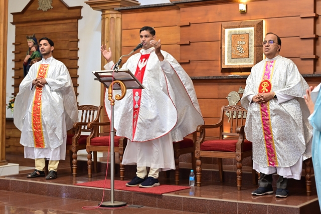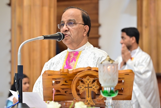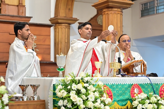 The Eucharistic celebration commenced and was presided over by Fr Alwyn Richard D’Souza, director of Family Life Centre, diocese of Mangalore and Guardian of St Zuze Vaz Home, who served as the main celebrant. He was joined by Fr Roque D’Sa parish priest and Fr Pradeep Rodrigues assistant parish priest as co-celebrants.
