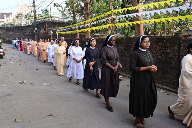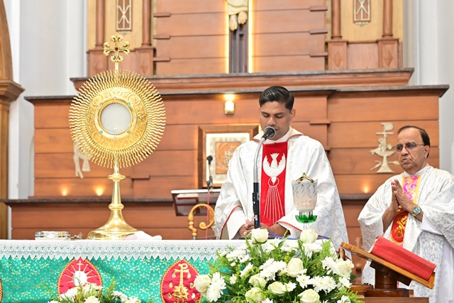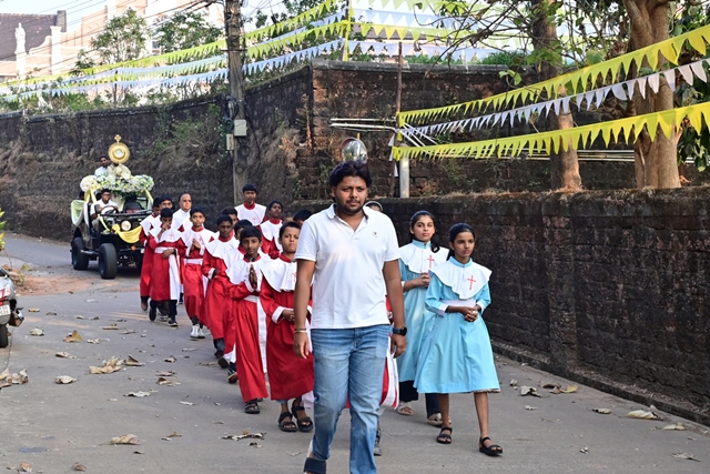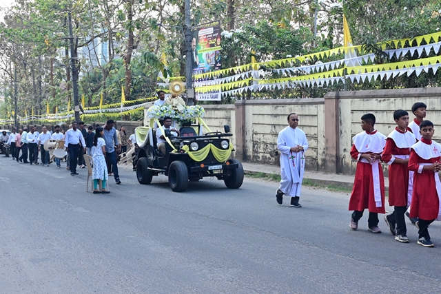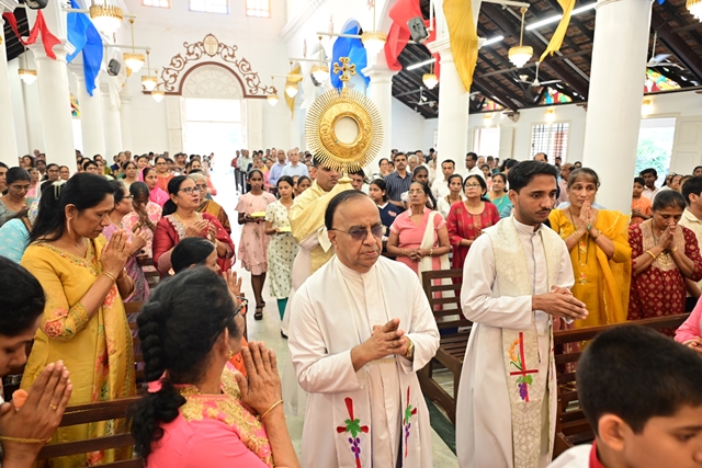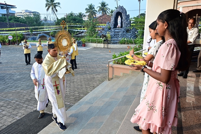 Following the Holy Mass, a grand Eucharistic procession was held. The Holy Eucharist, reverently placed in a golden monstrance, was carried in procession through the church. The brass band added to the solemnity of the occasion by rendering devotional hymns, creating a prayerful and uplifting atmosphere.