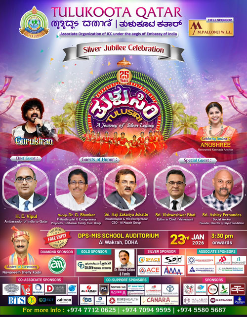 The silver jubilee celebration will be held on January 23 at Delhi Public School, Wakra, from 3.30 pm and is expected to be a vibrant cultural evening bringing together members and well-wishers of Tulukoota. Navneeth Shetty Kadri from Tulunadu will take the audience through the evening’s proceedings. A grand stage performance involving over 150 participants will showcase the organisation’s journey, milestones and achievements.