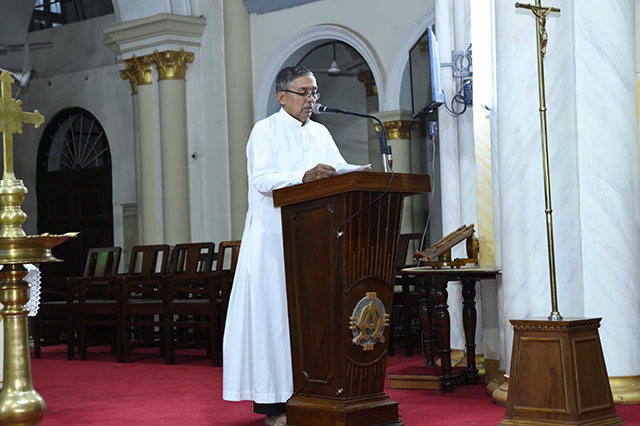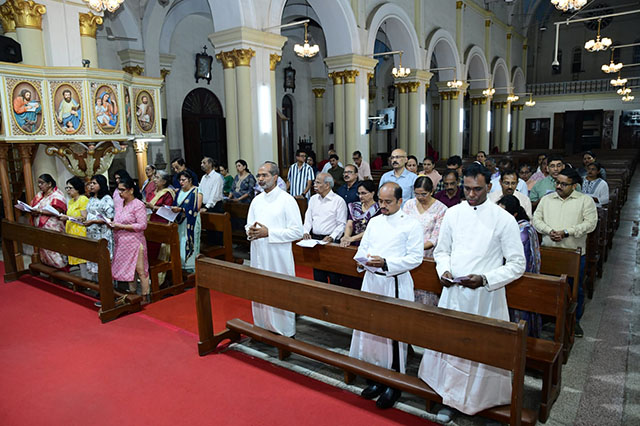 Fr Valerian D’Souza, parish priest of Rosario Cathedral, welcomed the gathering and conducted the prayer service along with Pastor Gabriel Ronith of CSI Kanthi Church, Binu C John of CSI St Paul’s Church, Mangaluru, and Fr Valerian Fernandes of Rosario Cathedral.