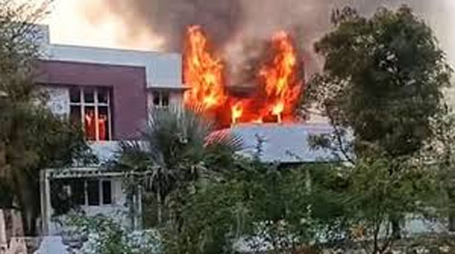 According to police, unidentified miscreants allegedly set fire to the house. Though security guards rushed to the spot, they were unable to prevent the blaze. By the time fire services arrived, the structure was almost completely gutted.