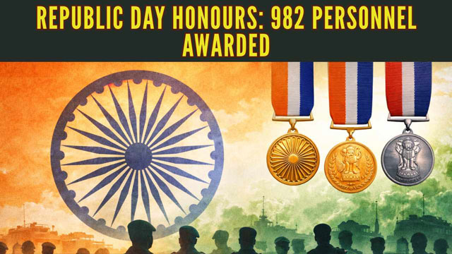 New Delhi, Jan 25: On the eve of this year’s Republic Day, the Union Ministry of Home Affairs (MHA) on Sunday announced the names of 982 personnel from Police, Fire Services, Home Guard, Civil Defence and Correctional Services who will be honoured with gallantry and service medals for their exceptional bravery and dedication.