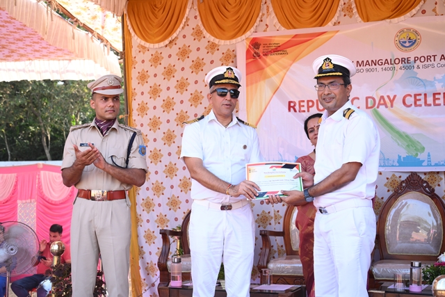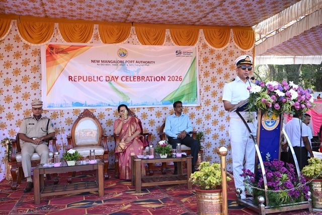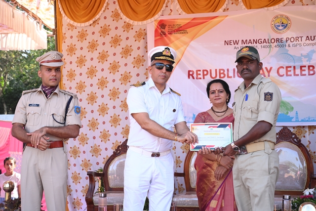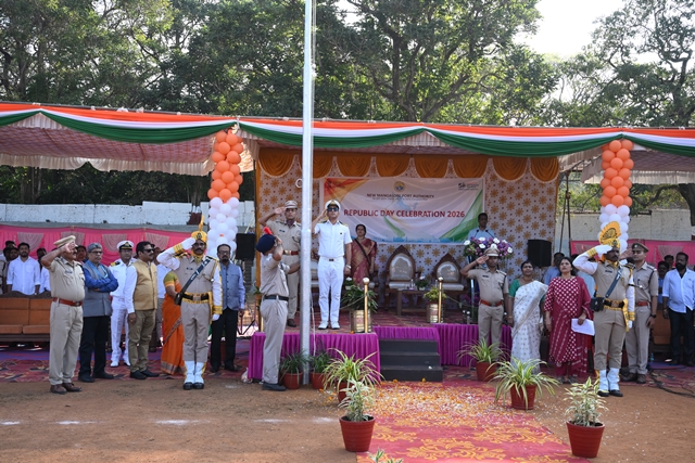 The national flag was unfurled by Capt Manoj Joshi, followed by the singing of the national anthem by students of Kendriya Vidyalaya No.1, Panambur. The parade contingent comprising CISF personnel, NMPA Fire Service, private security staff, and school children from Kendriya Vidyalaya and NMPA English Medium School performed a ceremonial march past, which was duly inspected by the chief guest, in keeping with Republic Day tradition.