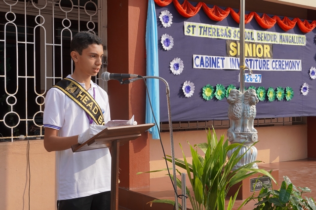 Mangaluru, Jan 29: St Theresa’s School, Bendur, solemnly conducted the Senior Investiture Ceremony for the academic year 2026–2027 on January 28, marking the formal installation of the newly elected senior school cabinet and prefects.