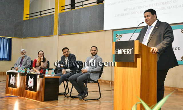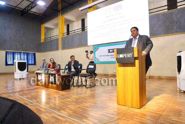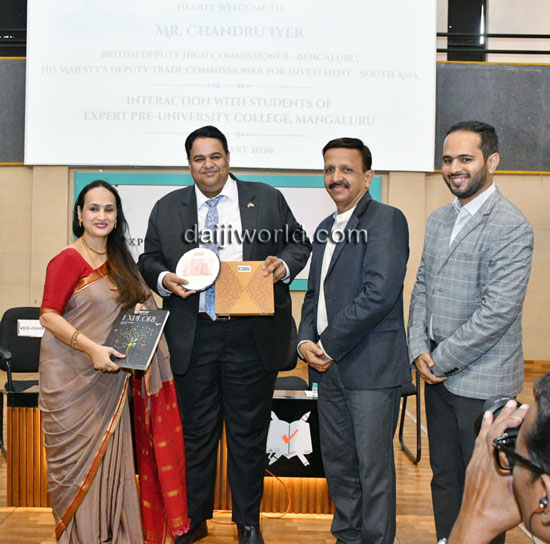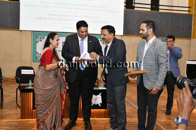 Mangaluru, Jan 29: Chandru Iyer, British deputy high commissioner to Karnataka and Kerala and deputy trade commissioner for investments, South Asia, visited Expert Pre-University College’s Valachil campus. He was accompanied by Rory Picardo, head – technology, education, skills and innovation, and other officials.
