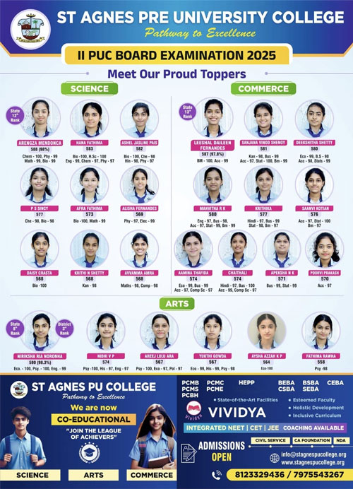 Mangaluru, Feb 2: St Agnes PU College, Mangalore, long regarded as a bastion of women’s education, has embraced co-education to reflect the evolving educational landscape and the needs of the contemporary age.