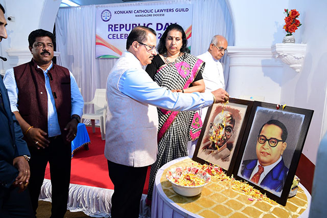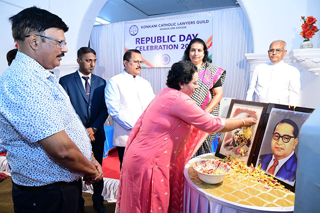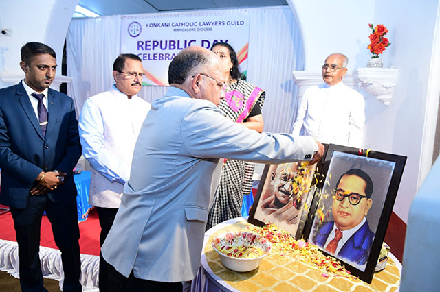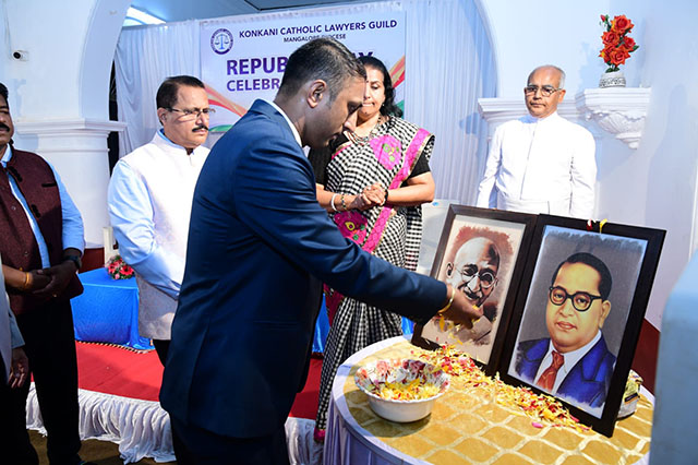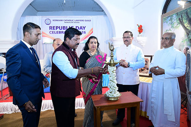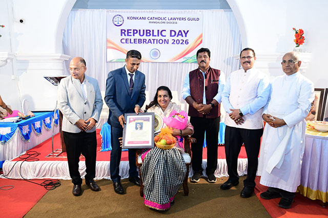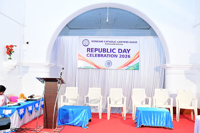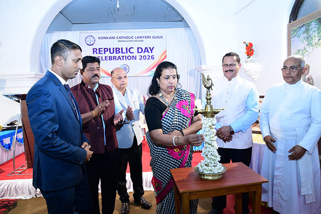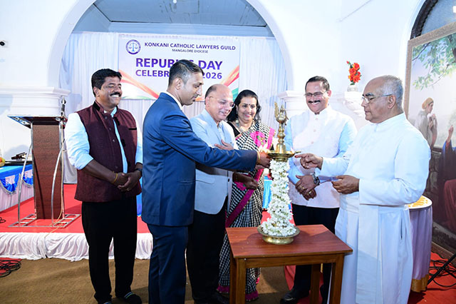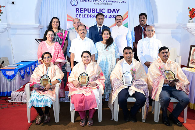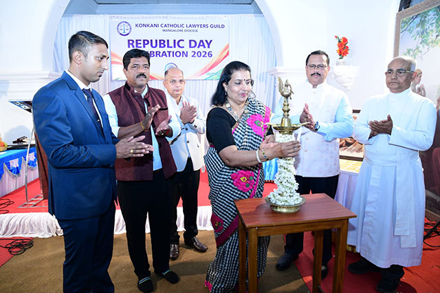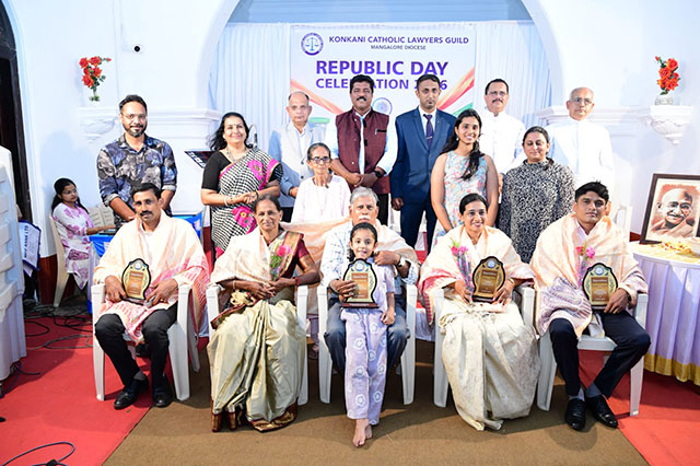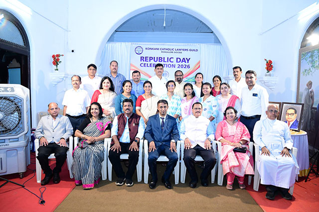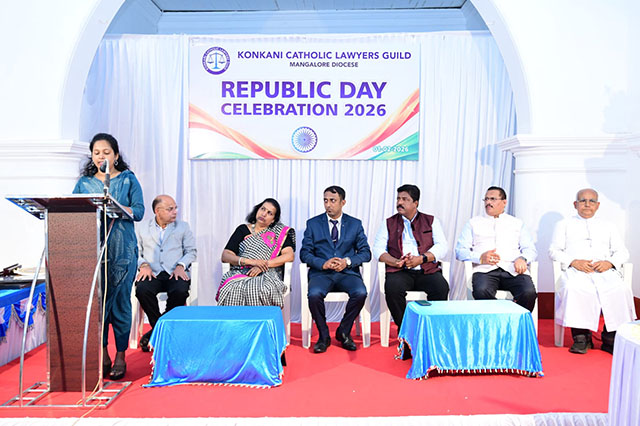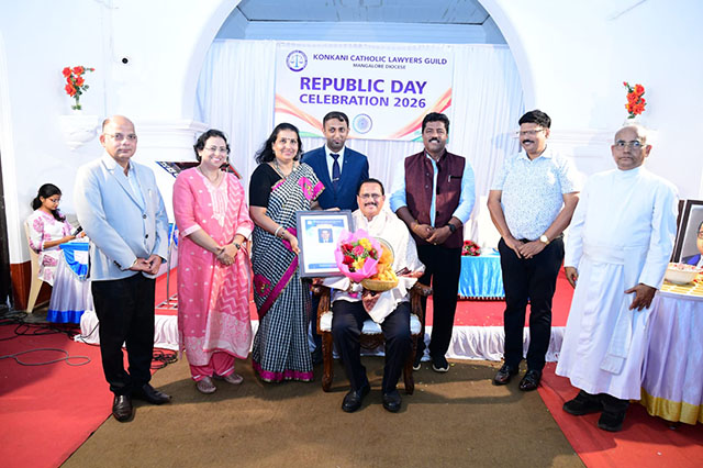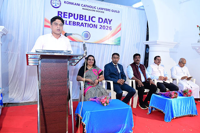 Mangaluru, Feb 2: The Konkani Catholic Lawyers’ Guild celebrated the 77th Republic Day with patriotic fervour at the St Antony Ashram Museum Hall, Jeppu, on Sunday, February 1. The programme began by invoking God’s blessings, setting a solemn and meaningful tone for the celebration.