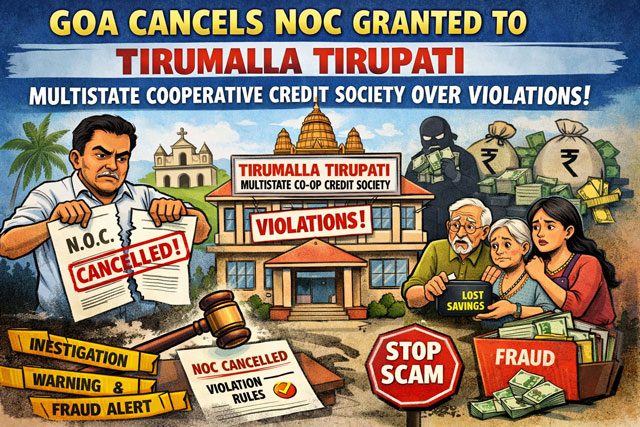 Panaji, Feb 3: The Office of the Registrar of Cooperative Societies has withdrawn and cancelled with immediate effect the permission and No Objection Certificate (NOC) granted to Tirumalla Tirupati Multistate Co-operative Credit Society Ltd. for extending its area of operation and opening 13 branches in Goa.