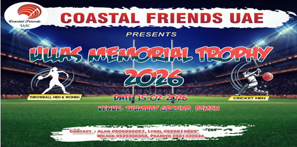 Dubai, Feb 4: Coastal Friends UAE (CFU) has announced the much-anticipated ULLAS Memorial Trophy 2026, a premier multi-sport championship featuring Men’s and Women’s Throwball Tournaments alongside a Men’s Cricket Tournament.