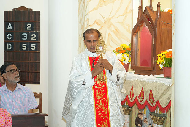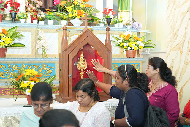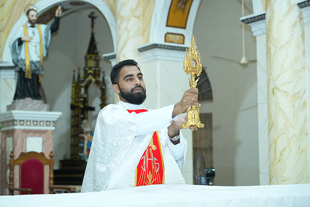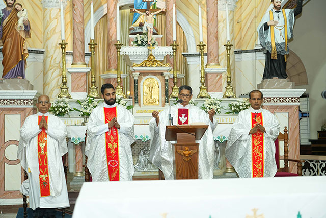Upon the conclusion of the Mass, Fr Nishanth Vivian Rodrigues presided over the novena, imparting blessings upon the faithful with the sacred relics. The liturgy was beautifully accompanied by the hymns of the Urwa parish choir.