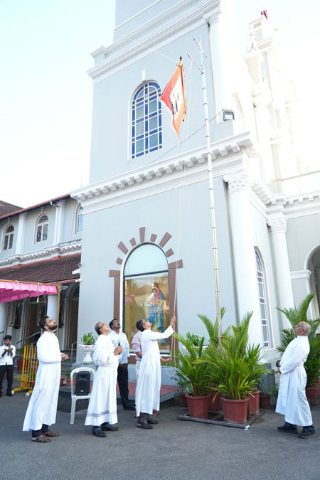 Mangaluru, Feb 6: The St Anthony Ashram, Jeppu, the Mangalore diocesan shrine and home for the poor and destitutes commenced its preparations for the grand annual celebration of the Relic Feast of St Anthony of Padua on February 6. As the Ashram’s dedicated shrine is situated at the Our Lady of Miracles Church, Milagres, the festive proceedings officially began today with the hoisting of the festal flag by Msgr Maxim L Noronha, vicar general of the diocese of Mangalore.
