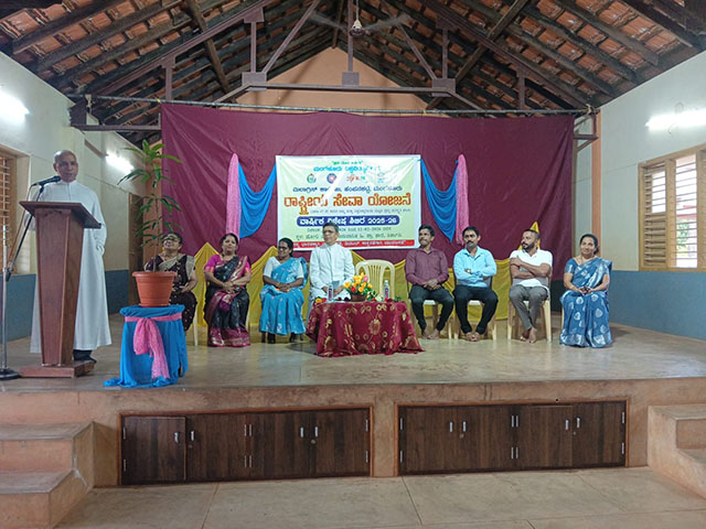The programme was gracefully compered by Spoorti, NSS secretary, who ensured the smooth and systematic conduct of the event. The gathering was welcomed by Joel Mascarenhas, NSS programme officer. The programme concluded with a vote of thanks proposed by Vanya, NSS volunteer, expressing gratitude to the dignitaries, organisers, volunteers, and all those who contributed to the success of the inauguration ceremony.